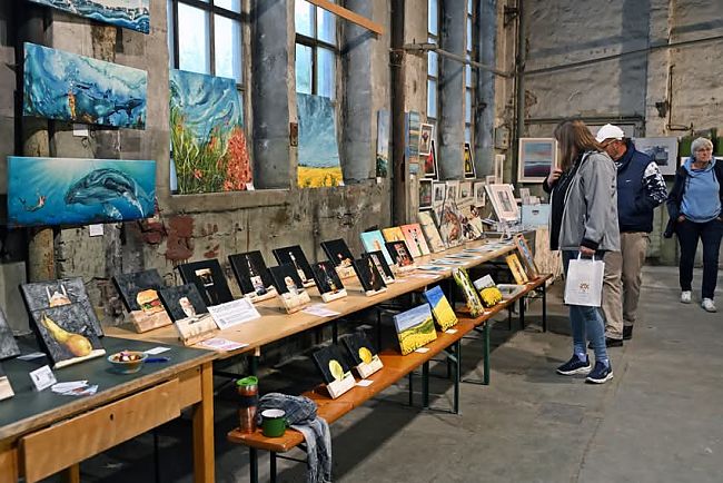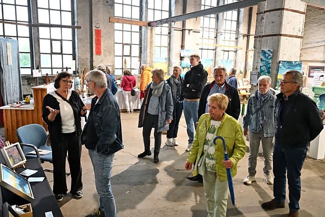 Zum anderen boten wir erstmalig der Künstlergruppe MITKUNSTEINANDER die Möglichkeit, ihre Arbeiten der Öffentlichkeit vorzustellen. Unter der Leitung von Heidrun Rehder zeigten acht Künstler/innen Werke aus Malerei und Skulptur.