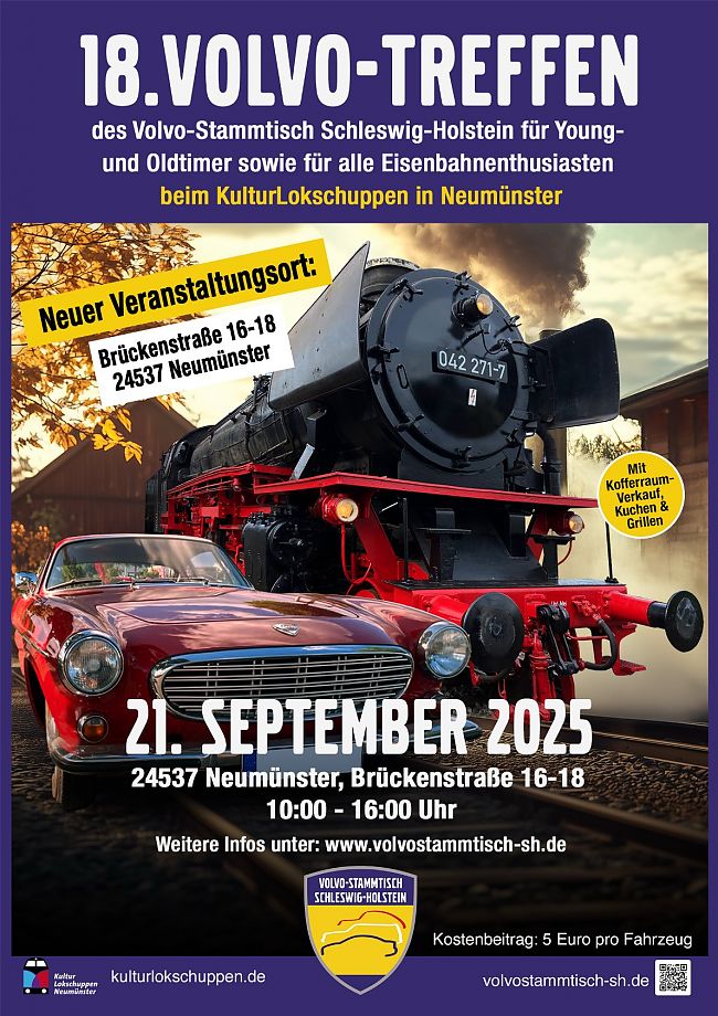 HomeVeranstaltungen18. VOLVO-Treffen Großartiges 18. VOLVO-Treffen in Neumünster am 21.09.2025 VOLVO-Stammtisch Saisonbeginn am 12.04.2025 in Neumünster 18. VOLVO-Treffen in Neumünster am 21.09.2025